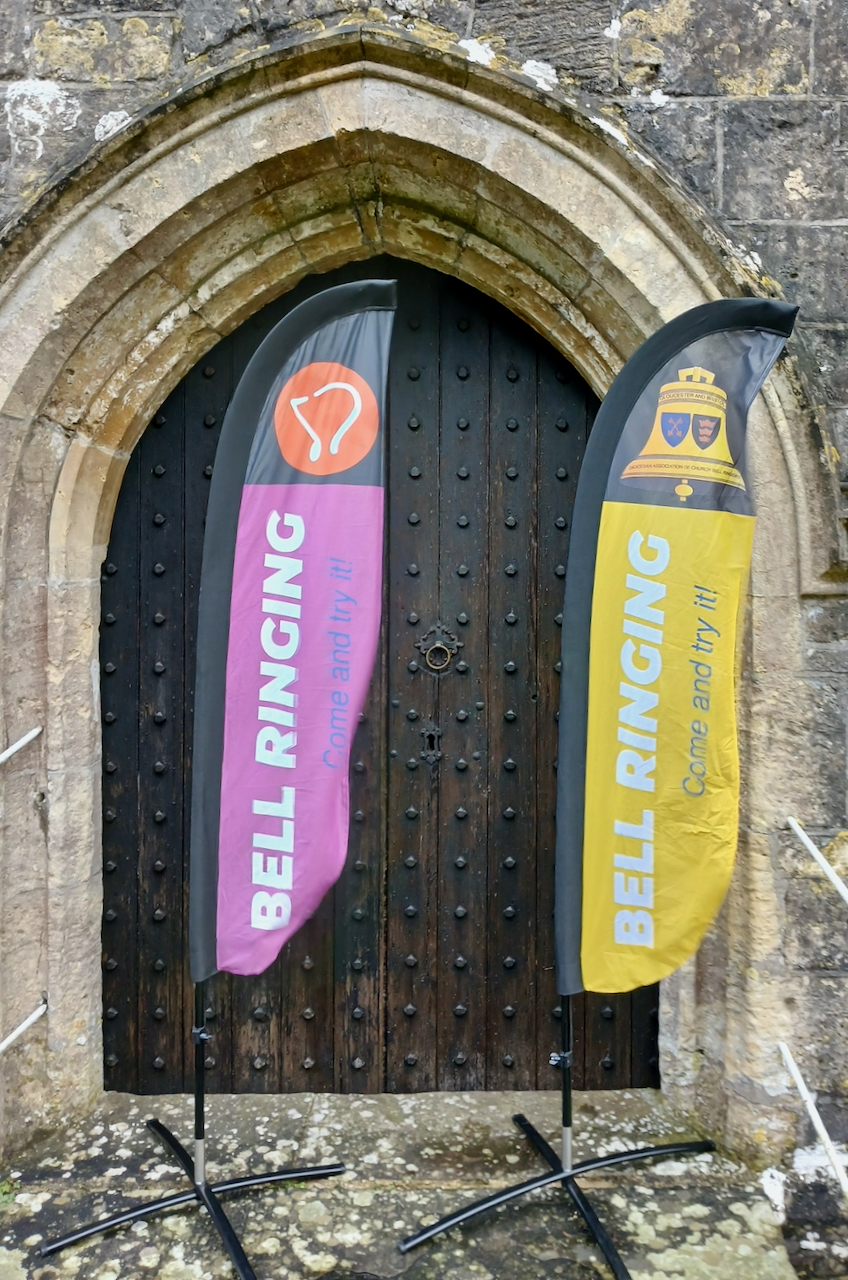 Contact G&B Roger or Fiona (see G&B directory or ask Branch Secretary) to arrange to borrow the G&B (yellow) and/or Bell Ringing (purple) flags. You will need to discuss collection arrangements.
